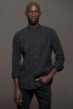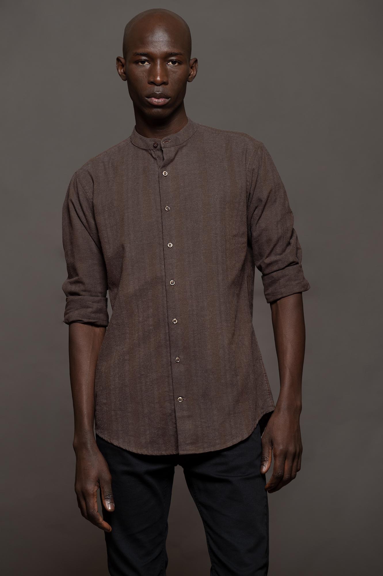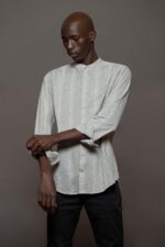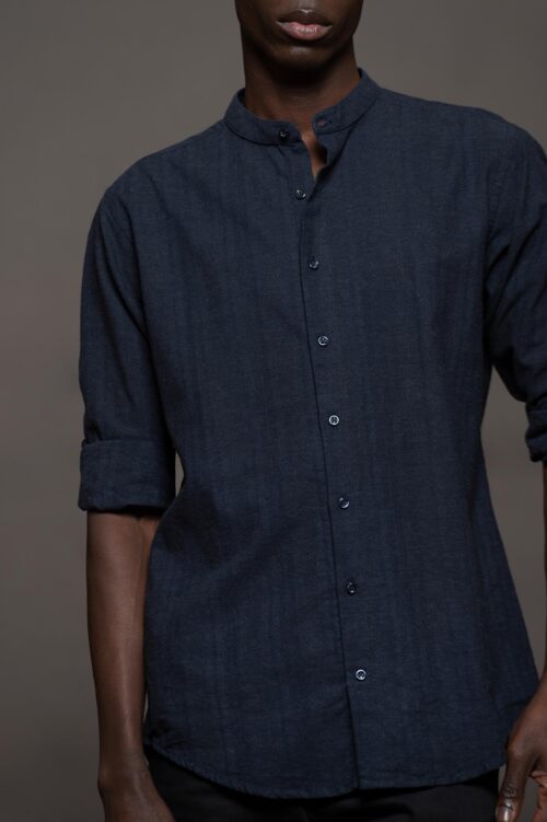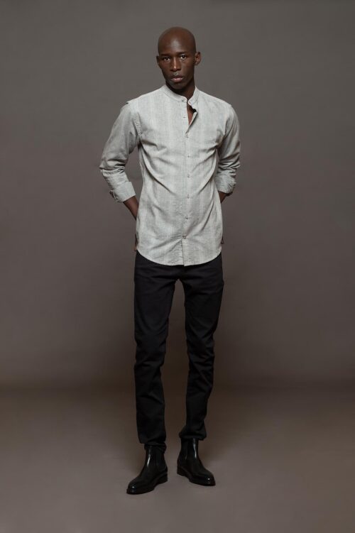 CAMISA LATTE molderia skinny, cuello Mao.